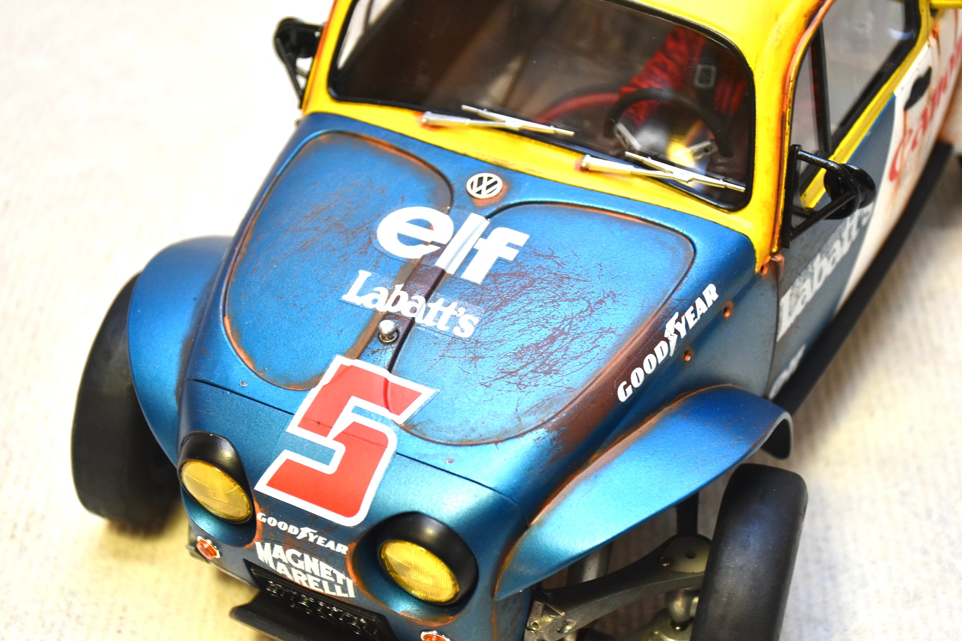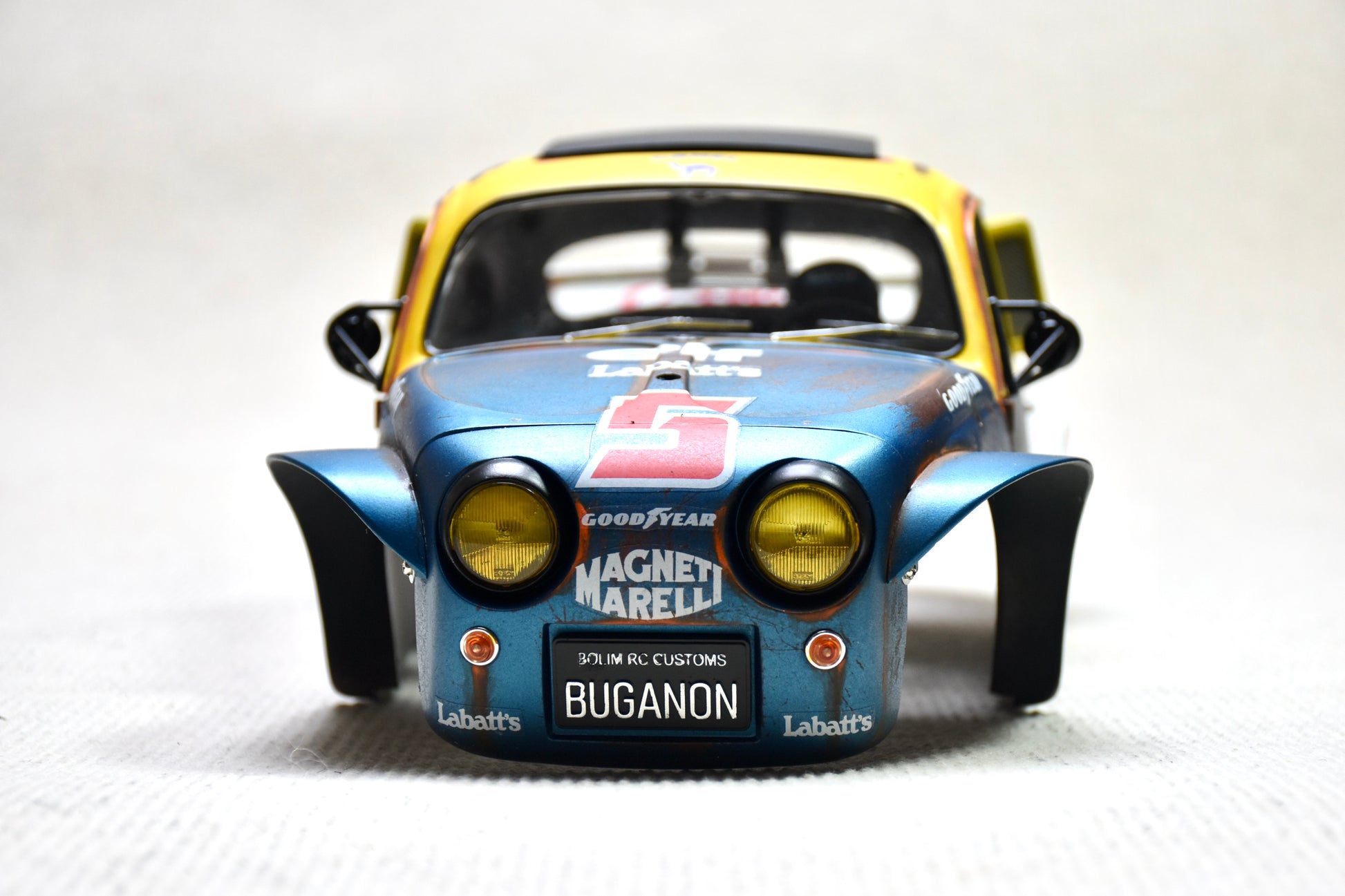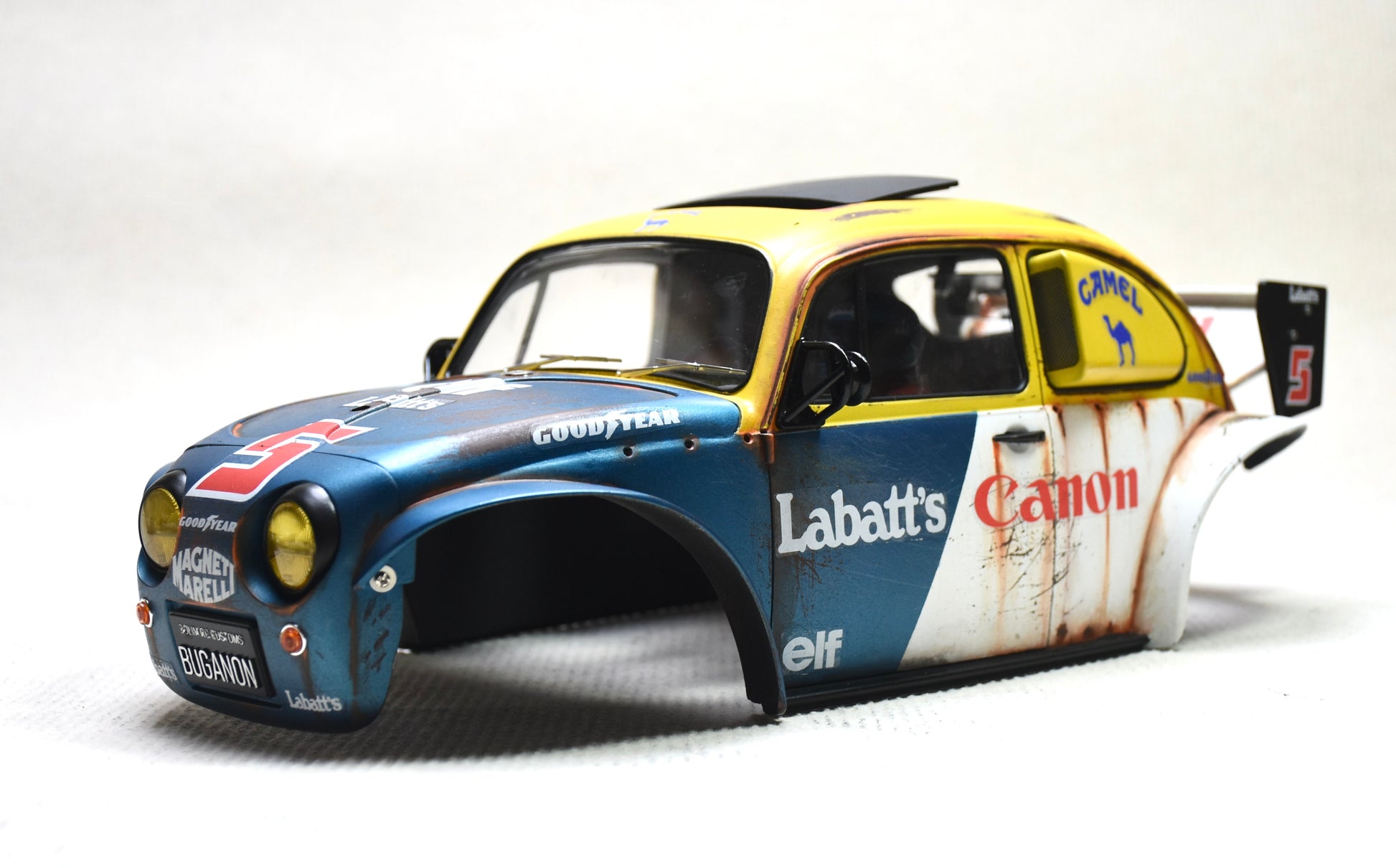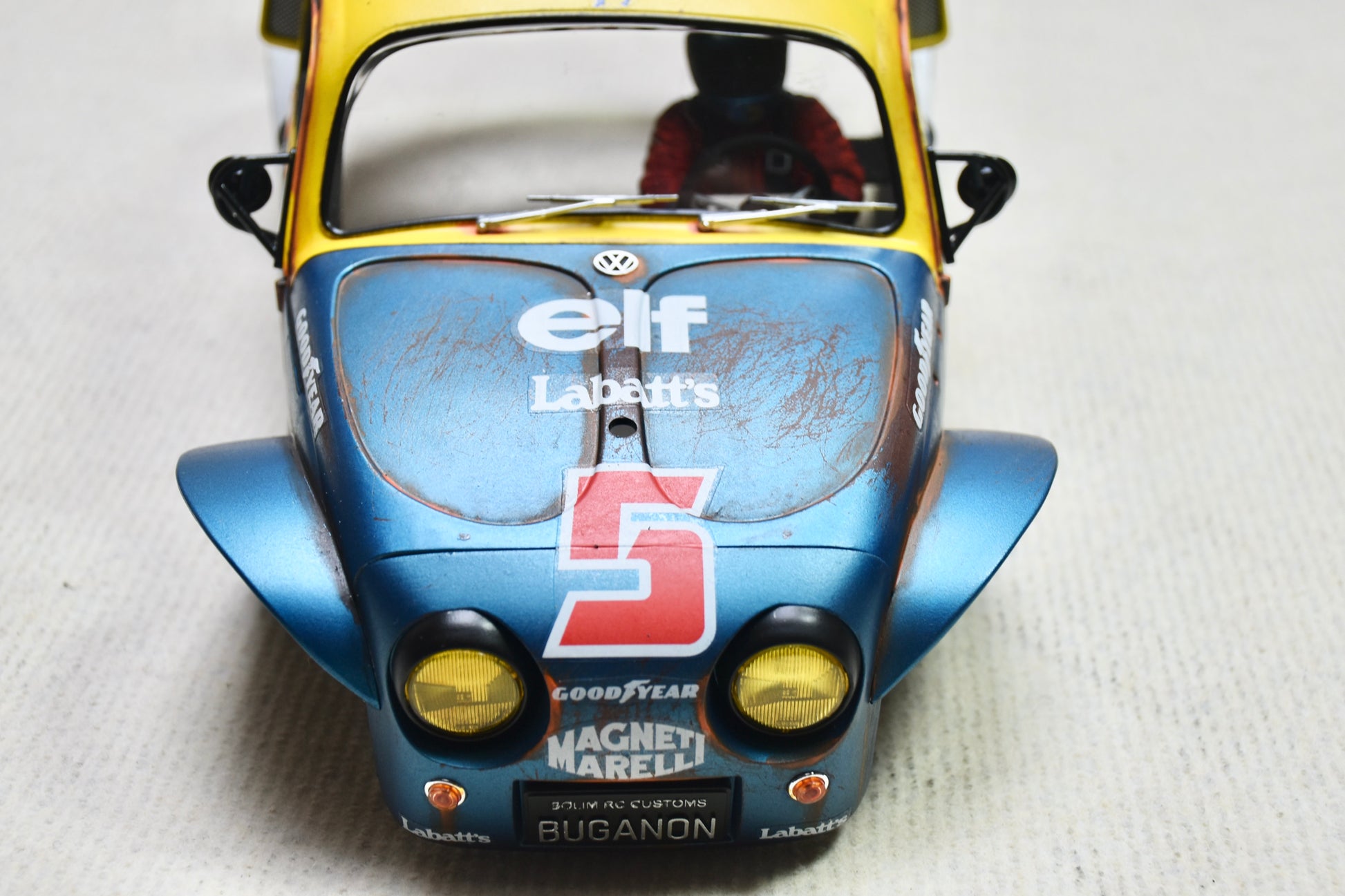 Carrosserie personnalisée peinte Tamiya Sand Scorcher 1/10 – Finition avec figurine de pilote (BUGANON)