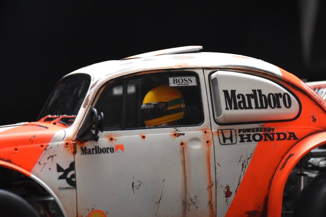 This listing features a hand-painted, fully finished body for the classic Tamiya Sand Scorcher 1/10 RC buggy. Each body is carefully detailed and includes a driver figure, making it perfect for collectors, custom builds, or display purposes.